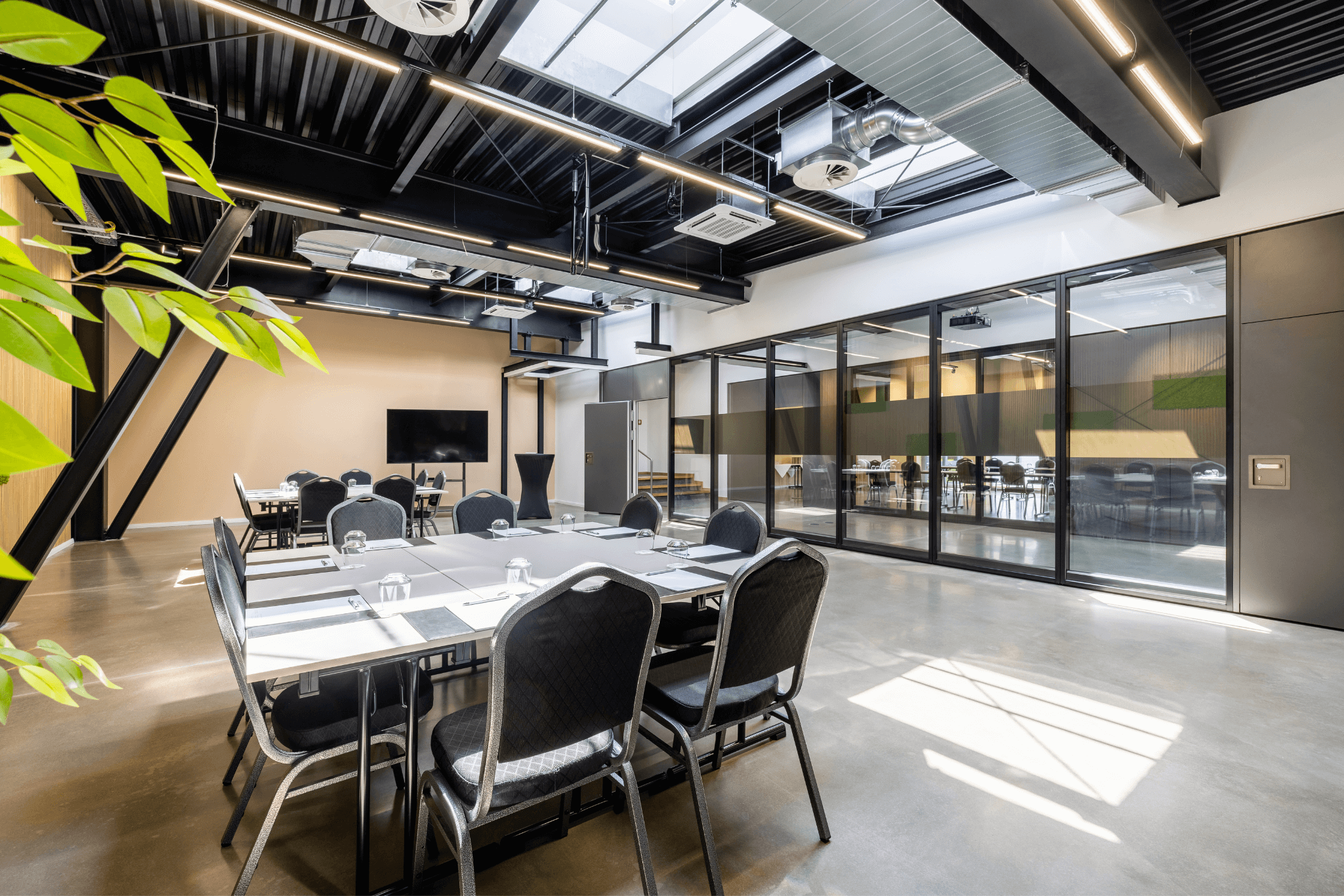 The Factory besteht aus vier großzügigen Räumen mit jeweils etwa 100 m². Die Räume können einzeln genutzt oder miteinander verbunden werden – ein Maximum an Flexibilität. Das Veranstaltungszentrum bietet eine erstklassige Umgebung für Meetings, Konferenzen und Events jeglicher Art und Größe: Von der Geburtstagsfeier im kleinen Kreis bis zur groß angelegten Produktpräsentation.